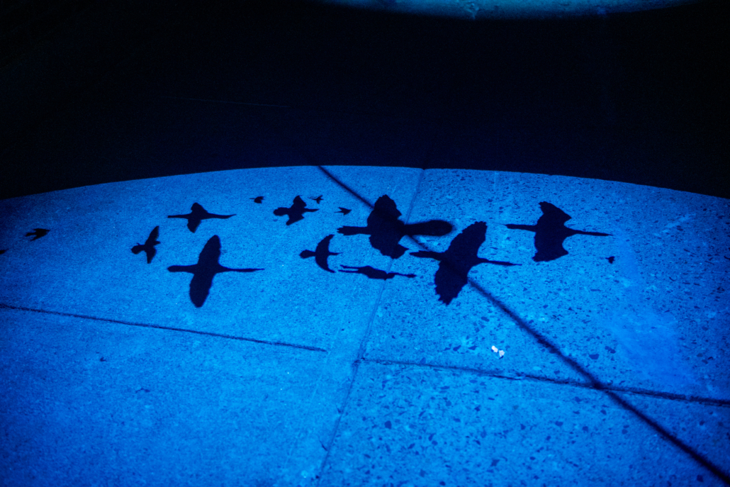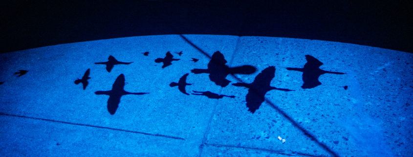 The installation blends ecological data with projection mapping, animation, and hand-cut-style silhouettes; referencing pre-photographic image-making methods. The patterns suggest cooperation, mobility, and shared knowledge across species, geographies, and cultures. These birds, and the journeys they represent, serve as an allegory for freedom, collaboration, and interconnectedness in both nature and society.