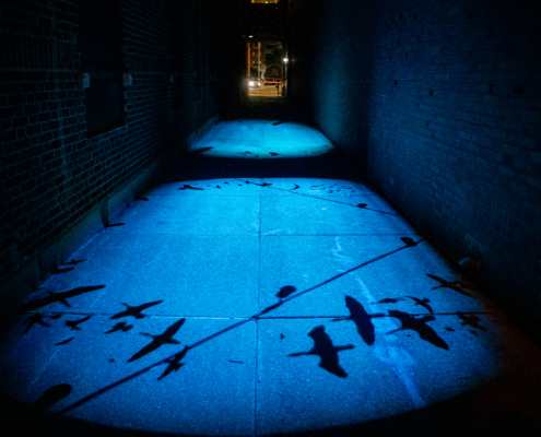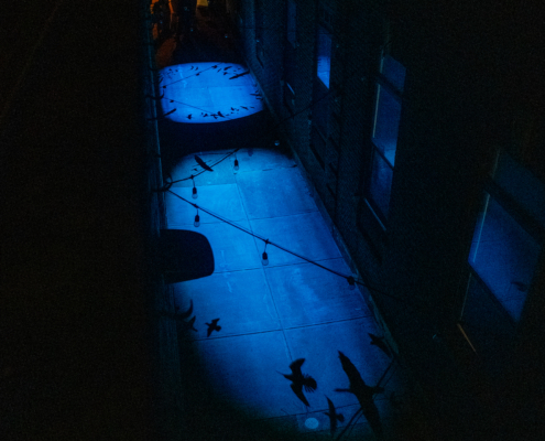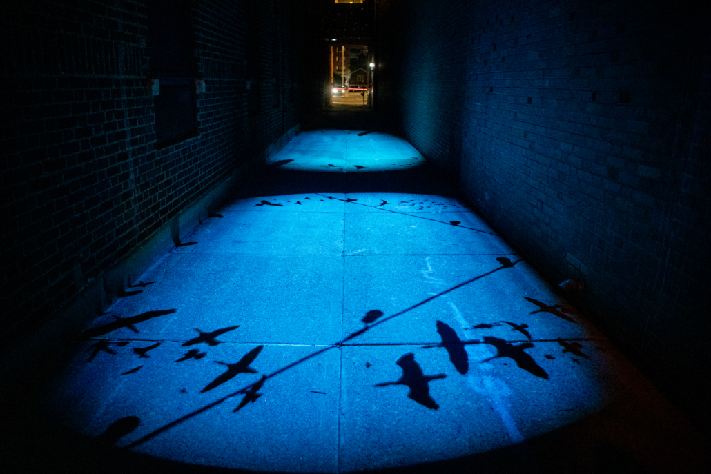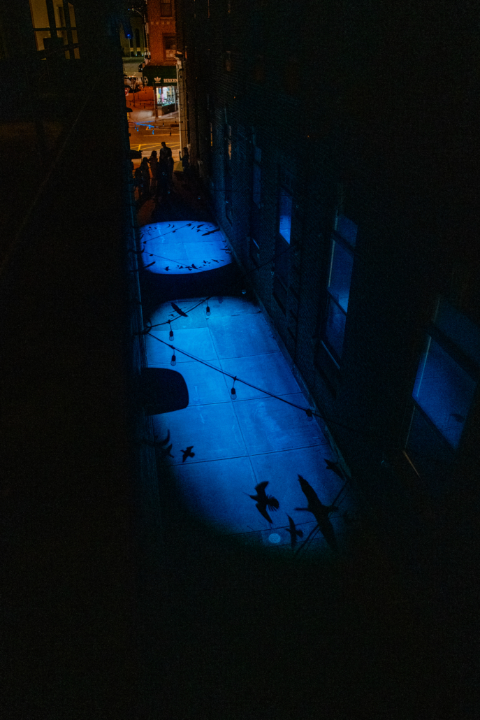 The installation blends ecological data with projection mapping, animation, and hand-cut-style silhouettes; referencing pre-photographic image-making methods. The patterns suggest cooperation, mobility, and shared knowledge across species, geographies, and cultures. These birds, and the journeys they represent, serve as an allegory for freedom, collaboration, and interconnectedness in both nature and society.
